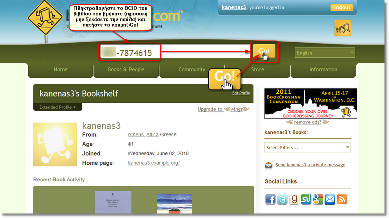 Αν δεν είστε μέλος, πληκτρολογήστε το BCID του βιβλίου στο αντίστοιχο πεδίο και πατήστε το κουμπί Go!