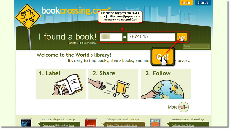 Αυτή η διαδικασία μπορεί να γίνει είτε είστε μέλος του www.bookcrossing.com είτε όχι.