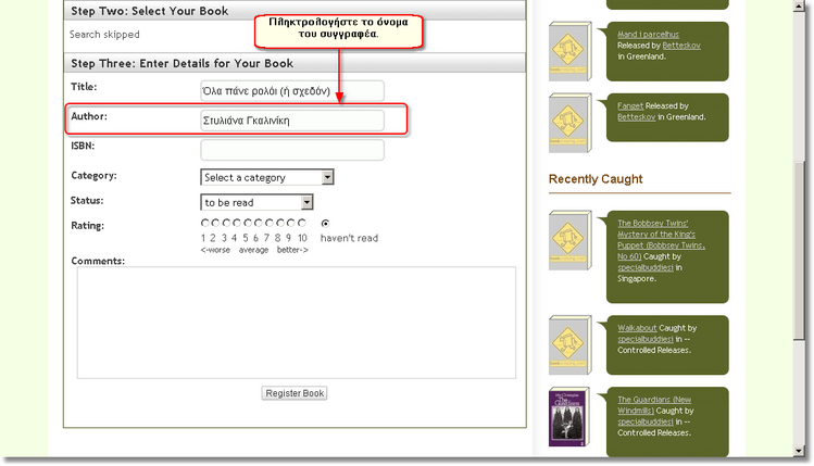 Εάν θέλετε να καταχωρίσετε κι άλλο βιβλίο, μπορείτε να επιλέξετε Register Another Book... για να επαναλάβετε τη διαδικασία: