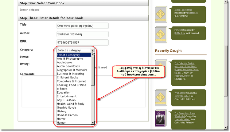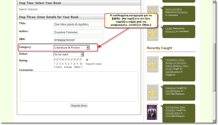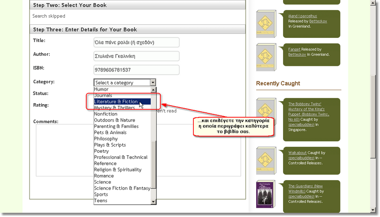 Προχωρώντας προς τα κάτω στη σελίδα, σας δίνεται η δυνατότητα να επιλέξετε την κατηγορία στην οποία ανήκει το βιβλίο.