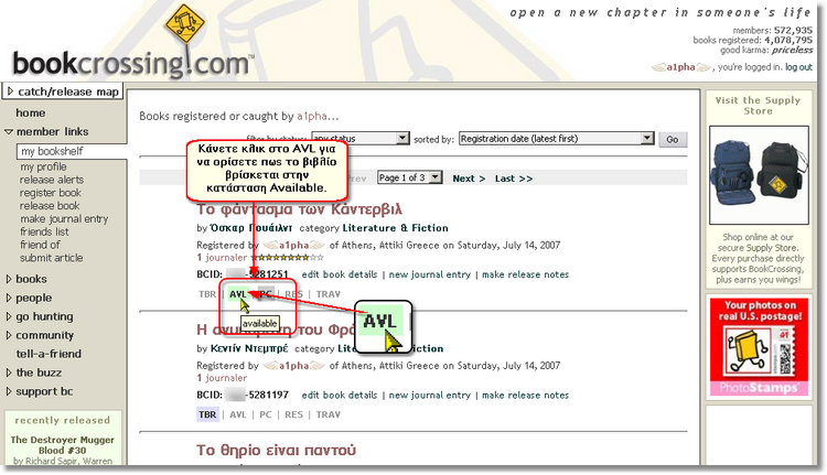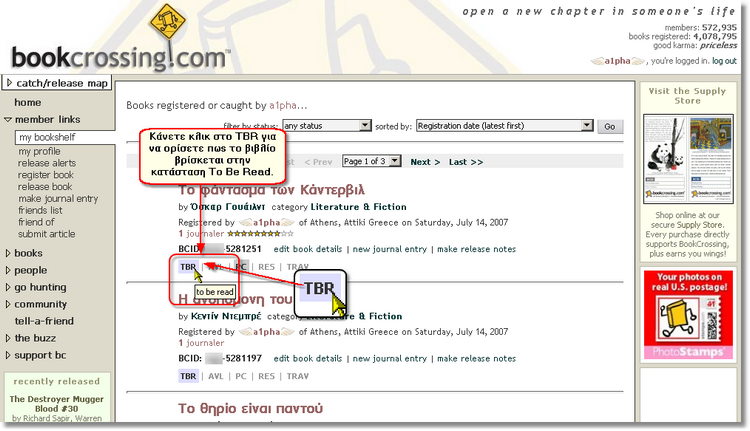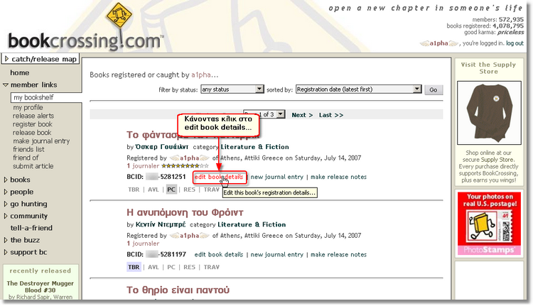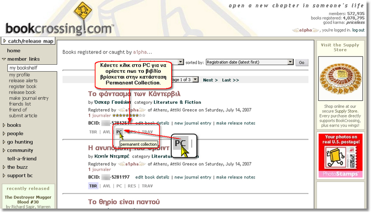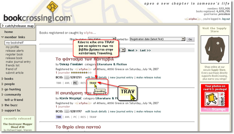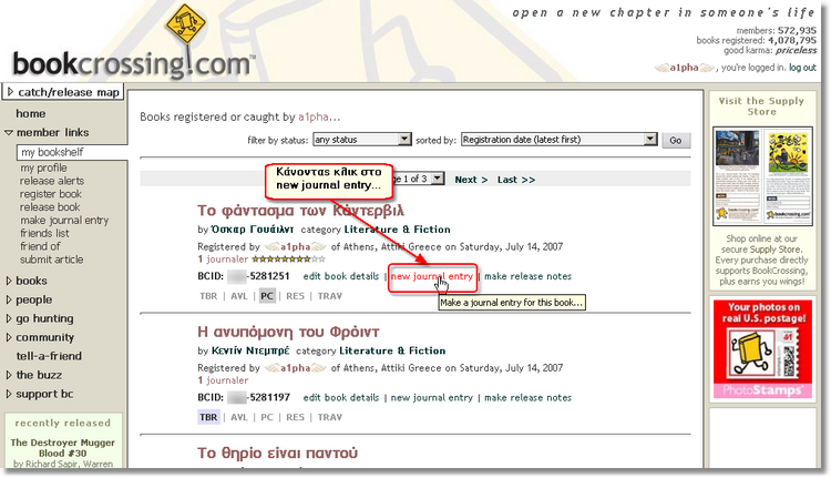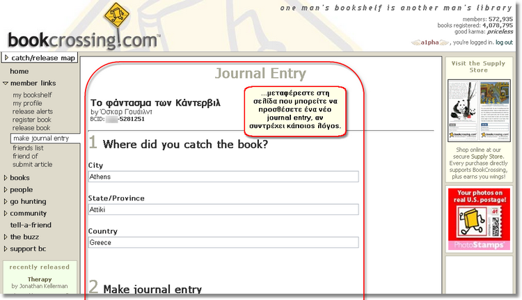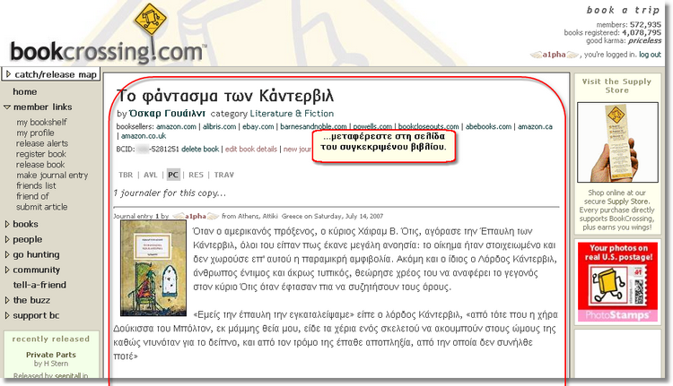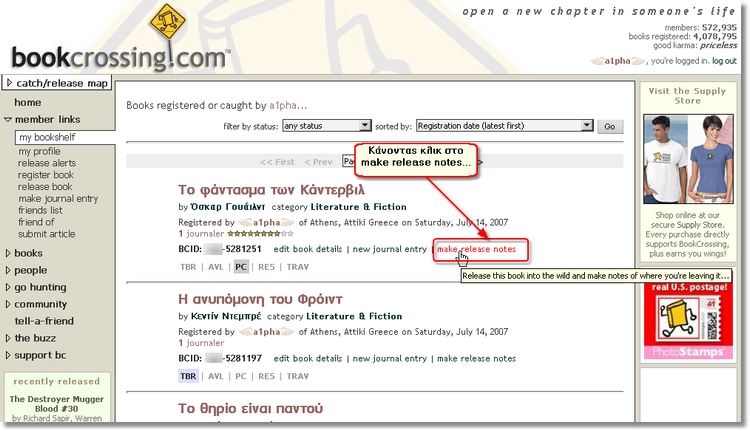 [Η παρούσα σελίδα δεν αντικατοπτρίζει την τωρινή κατάσταση του www.bookcrossing.com και πρόκειται να αλλάξει (κάποτε...)]